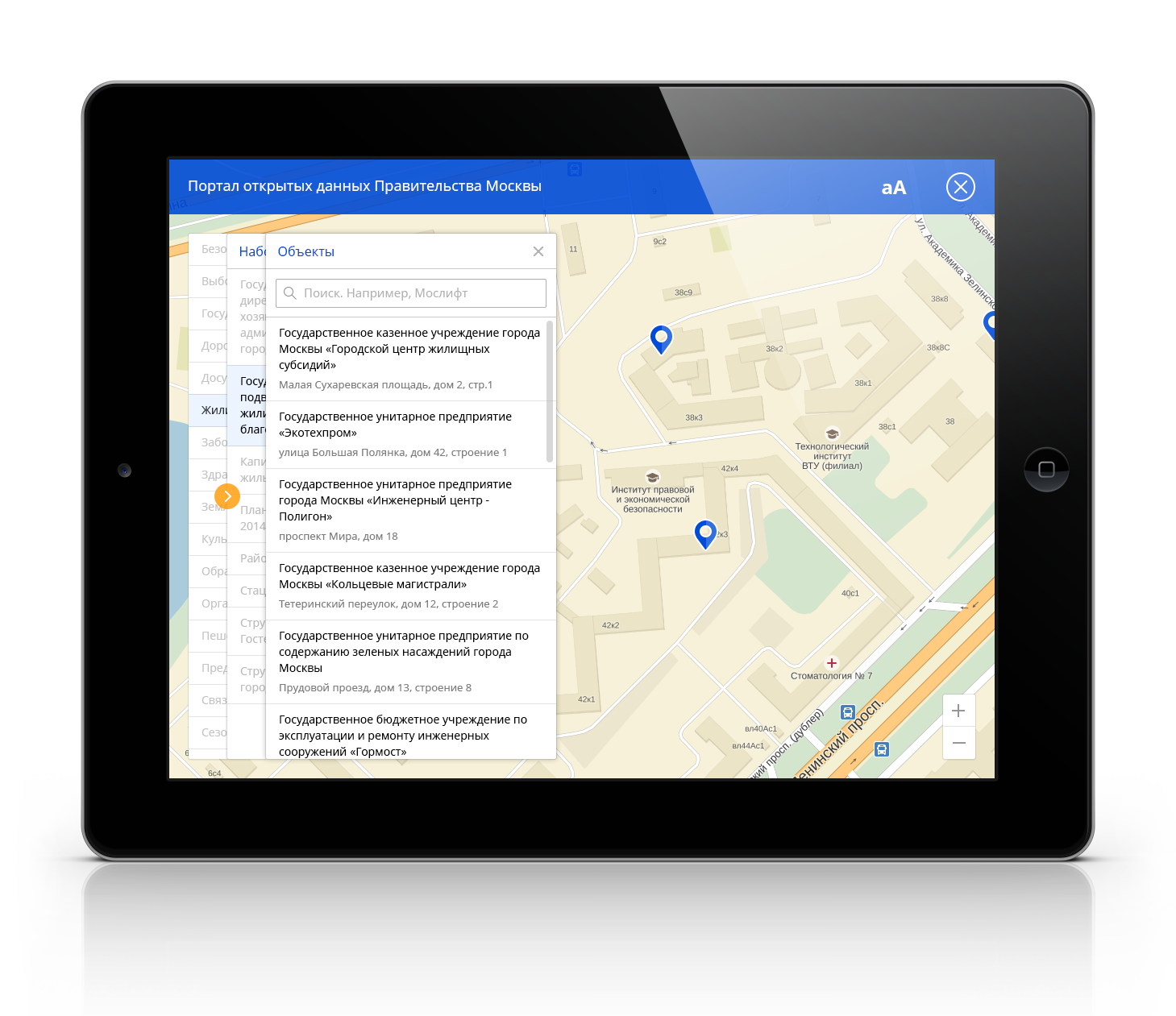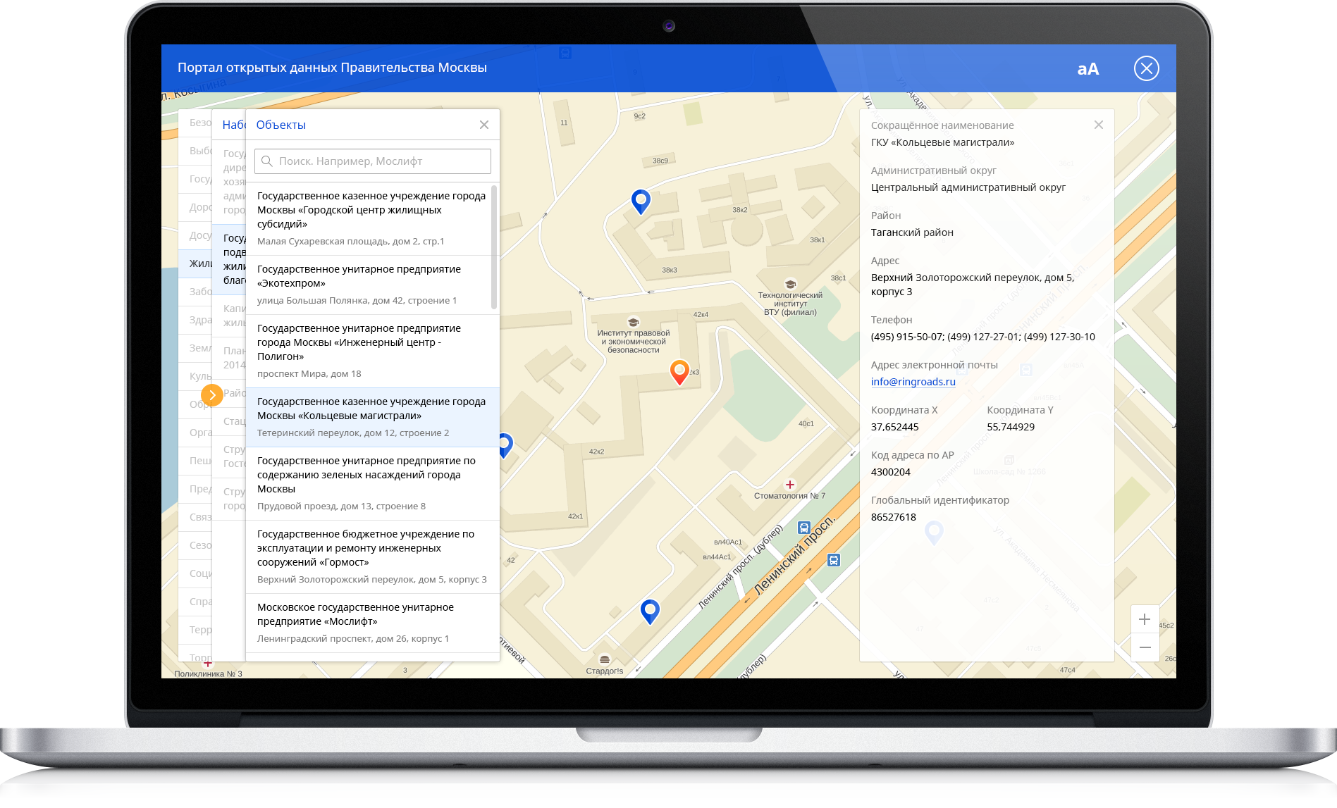 - Просмотр данных и по категориям, и по организациям, публикующим данные