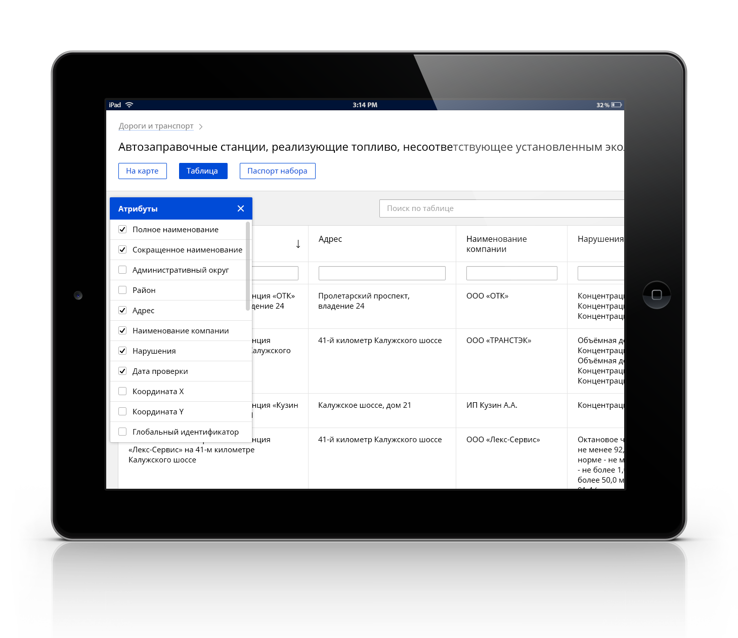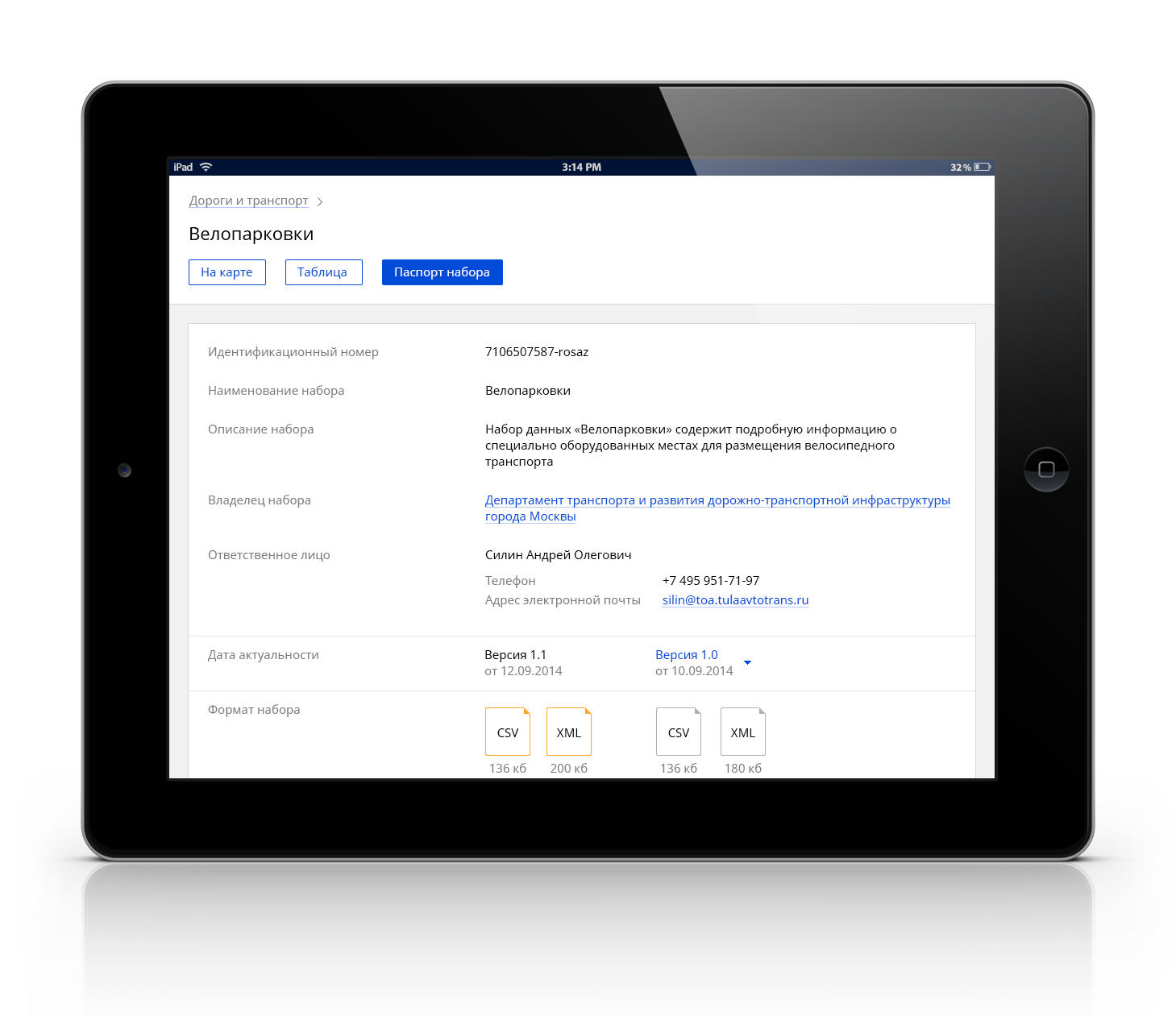 - Просмотр открытых данных на сайте: