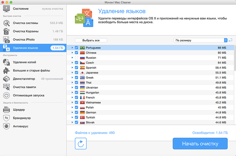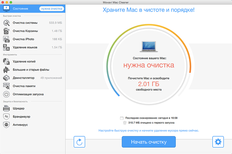 Movavi Mac Cleaner – это эффективная программа для очистки Mac OS, которая поможет вам навсегда избавиться от мусора на вашем компьютере. Ненужные файлы, о существовании которых вы даже не подозреваете, накапливаются на жестком диске, засоряют систему и замедляют работу вашего Mac.